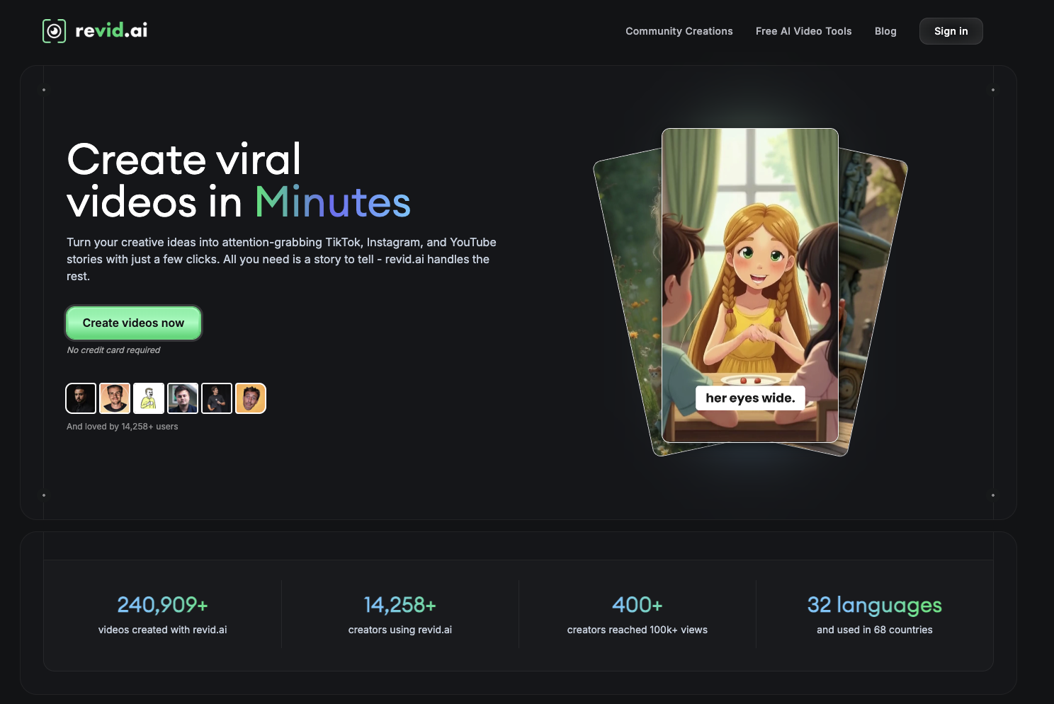 Revid.ai is an AI-powered video creation platform that focuses on helping users create engaging short-form content quickly and efficiently.